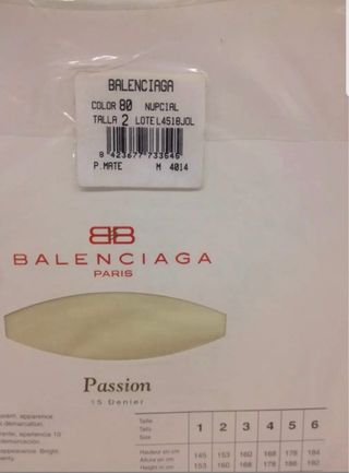 Panty nupcial de la marca Balenciaga, 15 Denier. Vendo cajas de Pantys, las que quieras... Stock de Panty Nupcial de la marca Balenciaga. Tallas: 1.2.3.4.5.6 Color: Ivory (novia) Stock total: + de 1000 pantys. Cajas de 6 unidades a menos de 0,70€ cada panty. Precio por caja: 4€