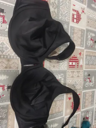 Sujetador de mujer de color negro. Marca: Oysho.Sin aros. Tejido muy confortable. - Diseño con copas. - Tirantes ajustables. - Cierre de corchetes. Usado en el embarazo. En buen estado.