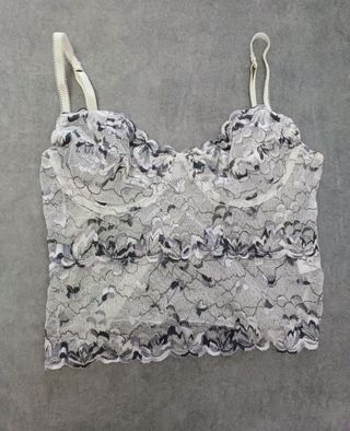 Precioso bustier con detalles de encaje y liguero. - Diseño elegante. - Tirantes ajustables. - Tejido de malla semitransparente.