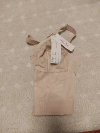 Sujetador de cuerpo de la marca Triumph, en color beige y sin estrenar. - Diseño con detalles de encaje. - Cierre frontal. - Tirantes ajustables.