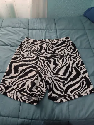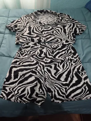 Conjunto de dos piezas con estampado de cebra. - Crop top de manga corta. - Shorts de cintura alta.