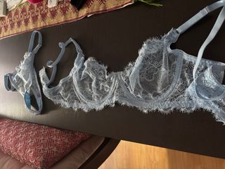 Conjunto de lencería de encaje. - Sujetador con aros y copas. - Braguita a juego. - Diseño delicado con detalles de encaje. todo transparente. Abstenerse “ tíos tontos” para preguntarme chorradas : ESTÁ NUEVO , sin usar y limpio Tono muy bonito en celeste Vendo por no irme bien de talla, obvio