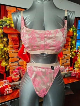 Conjunto de lencería de Etam con un delicado bordado floral. Talla 44-XL Nuevo con sus etiquetas Ideal para regalar estas navidades - Diseño de tirantes finos. - Tejido de encaje semitransparente. - Braguita de corte alto.