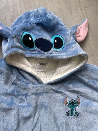 Bata manta tipo snuddie de Stitch Disney, Primark, color azul, muy suave y calentita. Ideal para el invierno, sofá o estar por casa. • Tejido mullido • Talla M/L, amplia y cómoda (ancho hombro 70cm. algo 85cm.) • Con capucha • Bolsillo delantero • Unisex • Fácil de lavar En perfecto estado (puesta una única vez, para una sesión de fotos).
