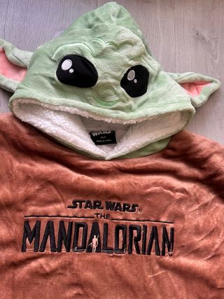Bata manta tipo snuddie de Star Wars the Mandalorian Grogu, color azul, muy suave y calentita. Ideal para el invierno, sofá o estar por casa. • Tejido mullido • Talla XS/S, amplia y cómoda (ancho hombro 63cm. algo 80cm.) • Con capucha • Bolsillo delantero • Unisex • Fácil de lavar Nueva sin uso