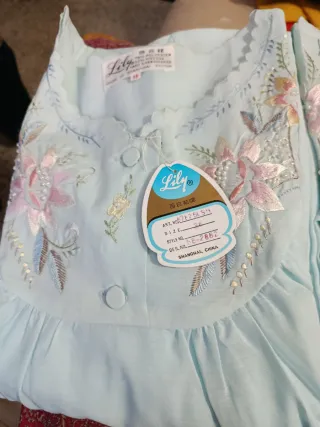 Bonito camisón de manga corta con delicados bordados florales. Son 2 cada uno 5 € - Diseño con cuello festoneado. - Cierre de botón. - Fabricado en Shanghái, China.