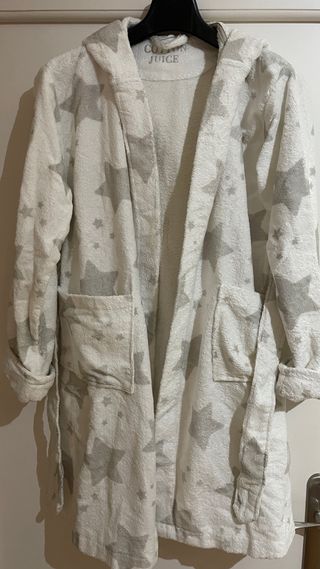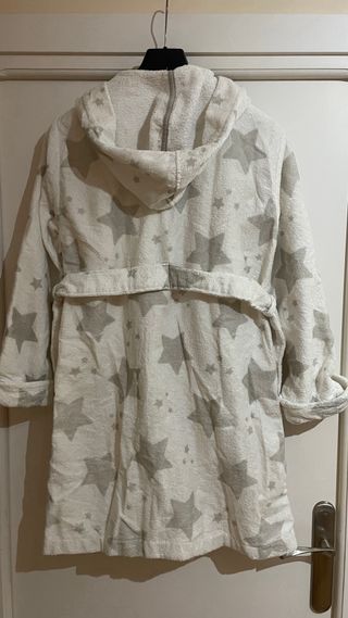 Albornoz suave con estampado de estrellas. - Diseño con capucha. - Dos bolsillos delanteros. - Cinturón para ajustar.