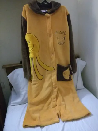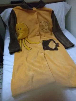 Bata polar suave y cómoda con un divertido diseño. - Estampado de pulpo y pez. - Cierre de botones. - Mangas largas.