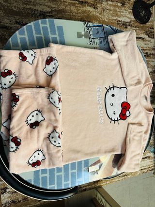 Conjunto de pijama polar de dos piezas de invierno de coralina con estampado de Hello Kitty. - Tacto muy suave y agradable. - Diseño divertido y tierno.