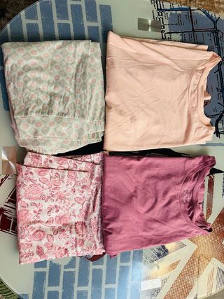 Conjunto de dos pijamas algodón cómodos y con bonitos estampados. talla 3XL - Pijama con estampado geométrico en tonos verdes y rosas. - Pijama con estampado floral en tonos rosas.
