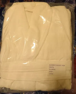 Albornoz de velour de la marca Bassols. - Tejido suave y confortable. - Diseño clásico con cinturón. - Acabado en blanco.