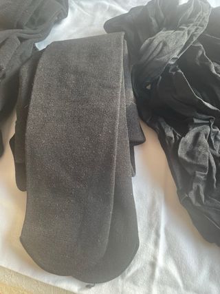 Medias-leotardos ideales para el frío. - Tejido suave y confortable. - Diseño opaco. -2 de ellos van abiertos por el pie son gorditos para el frío -1 son cerrados -2 pares son medias más gorditas q cualquier panti -Cada prenda 3 €