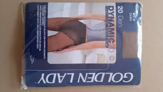 Medias de Lycra de la marca Golden Lady color Daino Talla IV - Modelo Dynamic 20 Den. - Con braguita de encaje. - Acabado satinado.