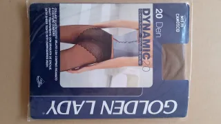 Medias de Lycra de la marca Golden Lady, modelo Dynamic 20 Den. - Color Camoscio. - Talla III - Diseño con braguita de encaje. - Acabado satinado.