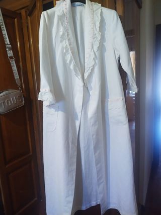 Preciosa bata de casa blanca con detalles en rosa. Es de algodón, suave y cómoda. Ideal para esos días de relax. - Talla mediana - Diseño elegante - Detalles delicados