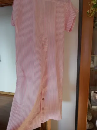 Bata rosa y blanca con bolsillos