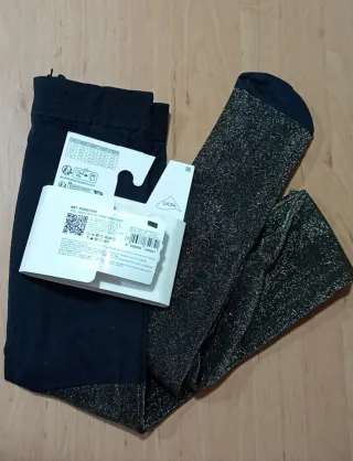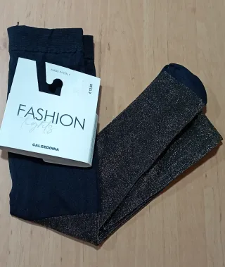 Pantys de la marca Calzedonia con un diseño brillante en dorado y negro. Son nuevos, sin estrenar. Está en Palencia. - Diseño con acabado brillante. - Cintura elástica cómoda.