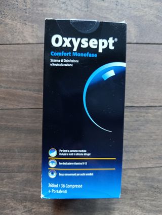 Solución desinfectante y neutralizante para lentes de contacto blandas. Caja precintada. Utilizar hasta 9/26. Compré varias unidades justo antes de tener que dejar de llevar lentillas. Tengo 3 unidades. - Sistema de desinfección y neutralización. - Incluye 360ml de solución, 36 comprimidos y portalentes.