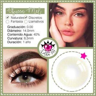 Lentillas de color para un cambio de look. - Color verde natural. - Ideales para uso ocasional. Pupila reduzida Material: HEMA Diámetro: 14.0 mm-14.5 mm Lente BC: 8.50 mm Contenido de agua: 40% Ciclo de reemplazo: 6-12 meses (Audio)
