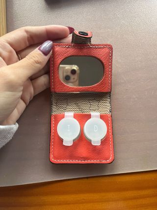 Práctico estuche para lentillas fabricado en piel. - Diseño compacto y elegante. - Incluye espejo interior. - Dos compartimentos para lentes de contacto.