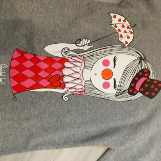 Vestido de manga larga con un divertido estampado. - Diseño de niña con paraguas. - Detalle de volantes en el cuello. - Lazos en el pelo con estrellas.