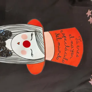 Vestido de la marca Anabel Lee con un diseño divertido. - Estampado de niña con sombrero y traje. - Detalles de estrellas. - Escrito Tú eres el mayor espectáculo del mundo.