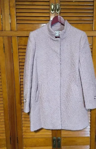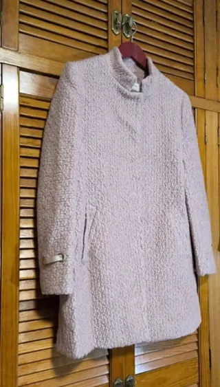 Elegante abrigo con un diseño texturizado y cuello alto. Perfecto para añadir un toque de estilo a tu vestuario. - En buen estado. - Textura única y llamativa. - Cierre frontal. - Bolsillos laterales.