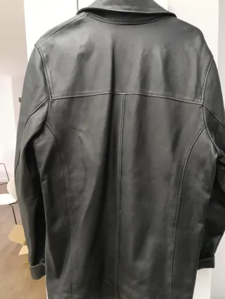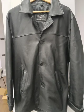 Chaqueta de cuero de la marca MARCO. - Color negro. - Talla M (equivalente a 38-40 / 48-50). - Diseño clásico con botones frontales. - Bolsillos laterales.