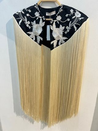 Capa Mantón Flecos Beige y Negro