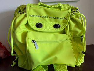 Mochila de la marca Mandarina Duck en un llamativo color neón. - Diseño moderno y funcional. - Cierre de cordón y solapa. - Bolsillo frontal con cremallera.