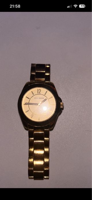 Elegante reloj de pulsera con un diseño clásico y sofisticado. - Esfera redonda con detalles. - Brazalete metálico. - Cierre de seguridad.