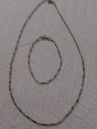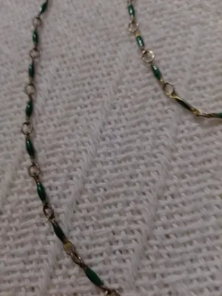 Elegante juego de gargantilla y pulsera. - Diseño delicado con detalles en verde. - Acabado dorado.