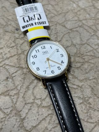 Reloj Q&Q con diseño clásico y correa de piel. - Diámetro de la caja 31 mm - Esfera blanca de 27 mm con números - Correa de piel negra con pespuntes blancos. - Caja y tapa de Acero - Nuevo con garantía - Movimiento de cuarzo - Posibilidad de cambiar color de correa de piel Pregunta sin compromiso
