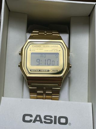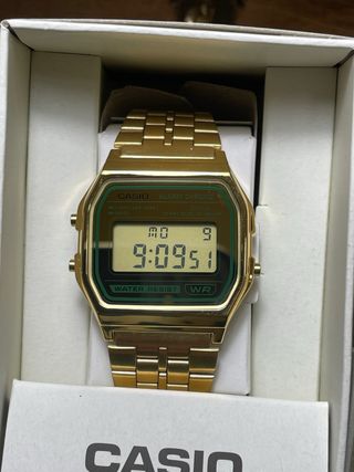 Este reloj Casio tiene un diseño clásico y elegante. - Correa de Acero dorado. - Esfera con detalles en verde. - Caja de resina - Resistente al agua - Cierre ajustable - Duración de pila de 7 años aprox - Calendario automático - Cronometro y Alarma - Incluye Manual - Nuevo Pregunta sin compromiso
