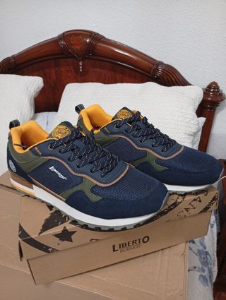 Zapatillas deportivas de la marca Liberto en tonos azules y amarillo. Perfectas para el día a día. - Cierre con cordones. - Suela de goma. - Detalle de logo en la lengüeta.