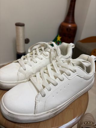 Zapatillas deportivas de color blanco, talla 38. Un básico para tu día a día. - Diseño clásico y versátil. - Cierre con cordones.