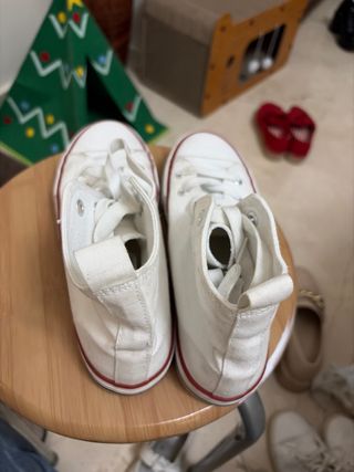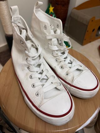 Zapatillas altas de lona en color blanco. (se tienen q lavar y están como nuevas) - Cierre con cordones. - Suela de goma. - Detalle de banda en color burdeos