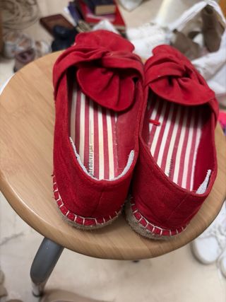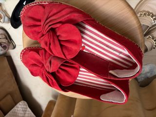 Bonitas zapatillas de Stradivarius con un llamativo lazo. se lavan y quedan como nuevas - Diseño con rayas rojas y blancas en la plantilla. - Detalle de costuras en la suela.