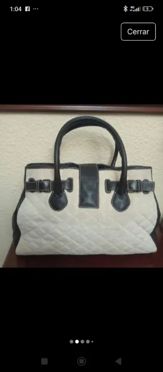 Bolso de mano con un diseño acolchado y detalles en piel.es acolchado con asas , base, laterales,esquinas y la marga PG en piel marrón .en perfecto estado, interior forrado con la marca PG .con bolsillo con cremallera grabada con la marca - Acolchado en el cuerpo principal. - Asas superiores de piel. - Detalle de logo en la parte frontal de piel