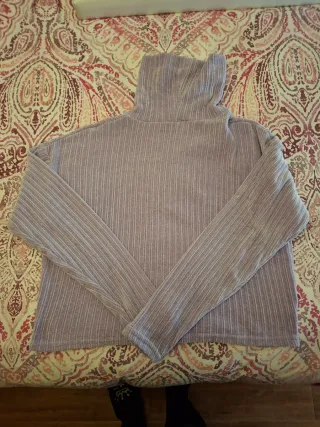 Jersey de Stradivarius con cuello alto y manga larga. Su tejido acanalado le da un toque moderno. - Color morado. - Tejido acanalado.
