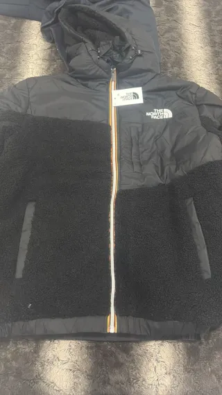Chaqueta The North Face en tonos negro y gris. Combina un diseño acolchado en la parte superior con un tejido de borreguito en la parte inferior. - Parte superior acolchada. - Parte inferior de borreguito. - Capucha integrada.