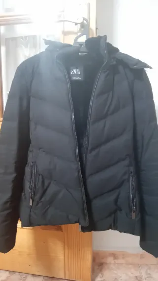 Chaqueta acolchada de la marca Zara. - Diseño con cremallera frontal. - Bolsillos laterales con cremallera. - Capucha integrada.