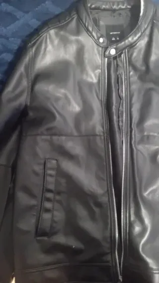 Cazadora de hombre de estilo moderno. - Cierre de cremallera frontal. - Cuello redondo con botón. - Dos bolsillos laterales con cremallera. - Puños con cremallera.