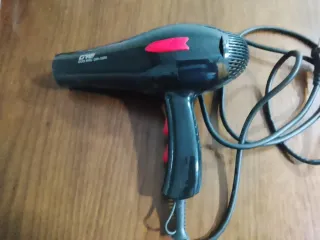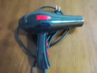 Secador de mano de la marca Duo Wei. - Diseño ergonómico. - Color negro con detalles en rojo.