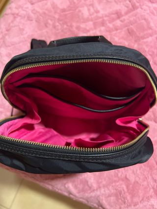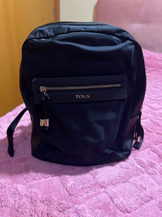 Mochila Tous original en color negro. - Diseño moderno y funcional. - Compartimento frontal con cremallera. - Detalles metálicos dorados. - Precio original 120€