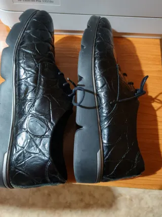 Elegantes zapatos para mujer con un diseño texturizado que imita la piel de cocodrilo Valoradas en 70 euros Usadas 1 sola vez - Acabado brillante. - Cierre con cordones. - Suela cómoda para el día a día.