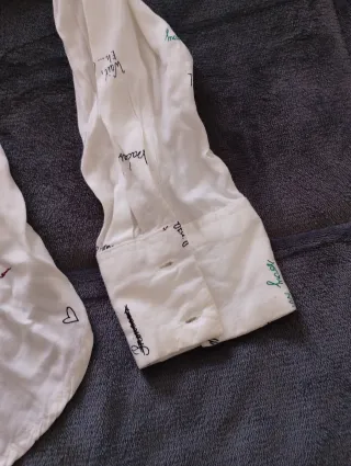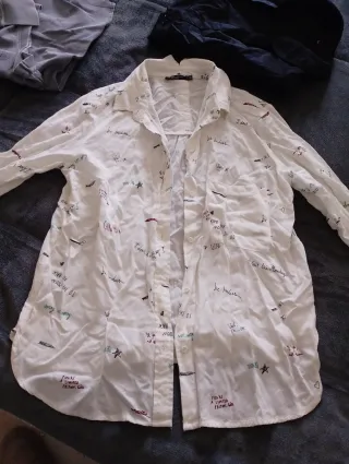 Camisa blanca de Bershka con un diseño original de texto y estrellas. Es ligera y cómoda. - Estampado de texto y estrellas. - Cuello camisero. - Cierre de botones.