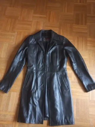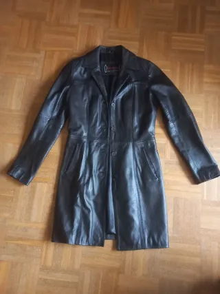 Abrigo largo de piel en color negro. Diseño clásico y elegante. - Material: Piel. - Color: Negro. - Corte unisex.
