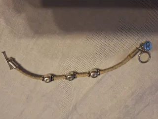 Bonita pulsera con un diseño trenzado y detalles metálicos. - Material de la pulsera: cuero o material similar trenzado. - Cuentas metálicas plateadas. - Cierre de tipo T-bar.