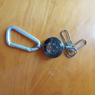 Llavero que permite extender los colgadores de llaves. Ideal para no olvidarlas. Se puede colgar de la mochila o pantalón. Esta un poco desgastada la cuerda, oscurecida en el tope, como se puede ver en la foto. Pero funciona bien.